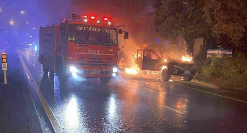 Foreign Man Hospitalised After Car Fire on Phuket Road Sparks Emergency Response