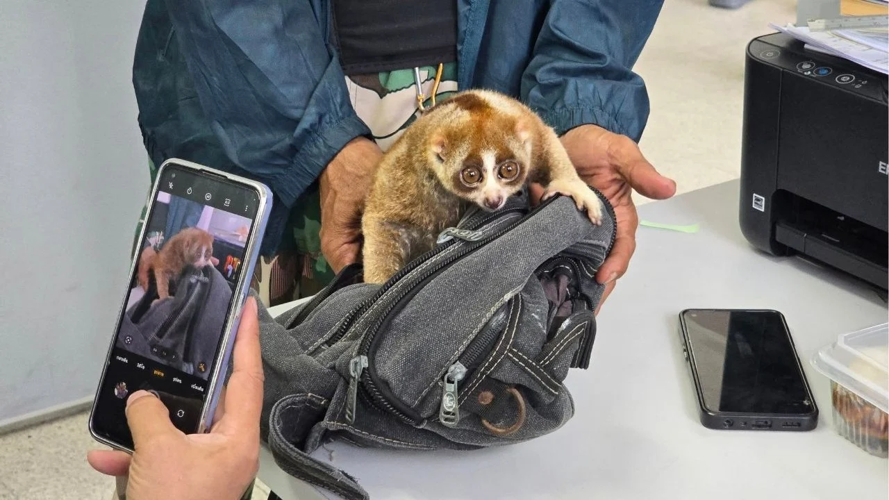 “They found a small slow loris left behind in a bag believed to belong to the owner. The suspect likely fled upon noticing officials approaching.”